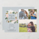Cet élégant collage photo magnolia bleu gris 3 enregistrer la carte date est parfait pour un mariage moderne classe. Le design floral doux est composé de pivoines roses vertes et aquarelles, de magnifiques fleurs de magnolia blanches et de coton avec des feuilles d'or et de vert, dans un agencement luxueux sur un arrière - plan gris clair.
