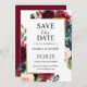 Elégant Burgundy Rouge Blush Blue Floral Wedding Enregistrer la Carte Date. (1) Pour plus de personnalisation, cliquez sur le lien "customiser plus loin" et utilisez notre outil de conception pour modifier ce modèle. (2) Si vous préférez les papiers plus épais / Finition mat, vous pouvez envisager de choisir le type de papier mat.