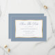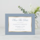 Elégant mariage bleu poussiéreux et or enregistrer la carte de date avec les détails mariages dans un cadre doré. Mariage bleu et or Dusty enregistrer la carte de date.