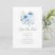 Elégant mariage floral bleu sauvez la carte de date. Facile à modifier le texte.