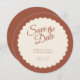 Élégante mais moderne et avec une touche de glamour rétro, cette carte de mariage Save the Date comporte un cercle en forme de pétoncle, des tons de terre cuite et de calligraphie de script beige et élégant. Customisez cette conception avec vos propres informations mariage.