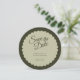 Élégante mais moderne et avec une touche de glamour rétro, cette carte Wedding Save the Date comporte un cercle en forme de coquillage, deux nuances de calligraphie verte et élégante. Customisez cette conception avec vos propres informations mariage.