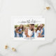 Simple Minimaliste Élégant Script de calligraphie 3-Photo Collage Wedding Enregistrer les Cartes de dates en noir et blanc. Ce design méticuleusement travaillé est adapté aux mariages modernes, dégageant un charme romantique enchanteur. Avec son gracieux collage en grille de 3 photos et sa police de queue de course en lettres moulées, ces cartes encapsulent l'élégance contemporaine. Personnalisez sans effort chaque carte avec vos détails et photos mariages précieux, offrant une façon raffinée et sophistiquée d'annoncer et de célébrer votre journée extraordinaire.