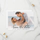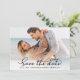 Élégant Design Moderne Script Photo Wedding Enregistrer Les Cartes De Date. Dispose d'une photo complète et d'une calligraphie de superposition photo à la mode écriture manuscrite en noir et blanc classique capturer l'essence de l'élégance contemporaine. Customisez facilement chaque carte en incorporant des détails mariages et une photo, offrant un moyen raffiné et sophistiqué d'annoncer et de célébrer votre journée extraordinaire.