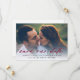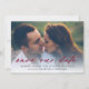 Cela économise notre carte de mariage date commence avec la photo de votre couple. Enregistrer notre date est écrit ci-dessous dans une photo de script élégante. Deux lignes de texte vous permettent de personnaliser votre demande. Une superposition transparente spéciale assure que vous pourrez voir le texte, quelles que soient les couleurs de votre photo. Il y a deux lignes de texte supplémentaires sur la sauvegarde de notre date de retour que vous pouvez customiser.