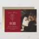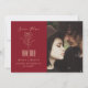 Écriture simple et moderne, minimaliste, faire-part de mariage reportée rouge, avec élégant dessin de fleurs rose or.