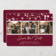 Elégant bordeaux et or photo mariage enregistrer les cartes de date avec une police de script moderne. Personnalisez facilement cette photo bordeaux enregistrez la date avec vos images et les détails du mariage, y compris un site Web mariage.