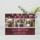 Personnalisé rustique bordeaux photo mariage enregistrer les cartes de date avec une police de script en faux or élégant. Personnalisez facilement cette photo bordeaux enregistrez la date avec vos images et les détails du mariage, y compris un site Web mariage.