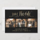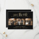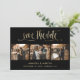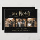 Personnalisé noir et or mariage 3 photo enregistrer les cartes de date avec la police calligraphie moderne. Personnalisez facilement cette carte avec vos images et les détails du mariage.
