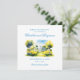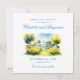 Élégant Mariage officiel Blue Monogram Crest Personnalisé Enregistrer la date. Un mariage traditionnel personnalisé sauvez la date avec une élégante calligraphie bleue illustrant l'aquarelle du lieu de réception de mariage que vous pouvez remplacer par votre propre illustration du lieu de réception. Le dos de la carte est orné d'une élégante crête monographique aquarelle avec des citrons et des fleurs et les initiales de mariée et mariée.