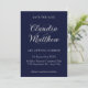Donnez le ton pour votre journée spéciale avec ce beau et classique enregistrer la date. Un arrière - plan de marine profonde fournit le cadre parfait pour l'élégant script d'argent, tandis que le revers de la carte vous permet de partager une photo préférée de vous deux. Personnalisez-le avec vos initiales et vos détails mariages pour un faire-part vraiment personnalisé et mémorable.