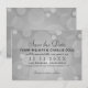 Un cadre festif de bulles rondes et de confettis servent d'élégant arrière - plan à ce mariage chic sauf le faire-part de date. Personnalisez avec du texte personnalisé. Parfait pour une fête de la veille de l'année, mais le design peut être customisé pour d'autres dates de mariage. Platine et gris argenté avec tons noirs.
