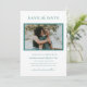 Save the date! Annoncez votre mariage dans le style avec ces tout simplement élégante verticale enregistrer les cartes d'annonce de la date qui contient votre photo de fiançailles horizontal préféré et le libellé qui peut être personnalisé avec tous les détails importants. Un design moderne, propre et intemporel. Les couleurs turquoise vert et blanc poussiéreuses et muettes peuvent être customisées pour correspondre à votre photo fiançailles ou à votre schéma de couleurs mariage.