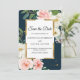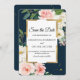 Annoncez votre jour spécial avec style avec cette élégante carte "Save the Date" avec un fond bleu marine, des florales aquarelles rose blush et ivoire, et un cadre en faux or sophistiqué. Parfaite pour les mariages rustiques, boho ou romantiques, ce design offre un mélange intemporel d'esthétiques classiques et modernes. Personnalisez avec vos noms, date et lieu en quelques minutes. Idéal pour les mariages d'automne ou d'hiver, les célébrations de jardin ou les lieux de grange chic.