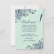 Ces belles cartes sont une excellente façon de faire savoir à vos amis et à votre famille de sauver la date pour votre prochain mariage. Ils présentent un design vert menthe et bleu marine avec votre photo dans un cadre en forme ovale entouré de dentelles ornées et de lettres de script fantaisie avec vos noms, date mariage et emplacement. Le dos a un graphique mignon "crayon us in" avec de l'espace pour une note qui peut inclure un site Web où vos invités peuvent aller pour plus d'informations.