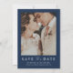 Save The Date Elegant Modern Navy Blue Floral & Photo Wedding