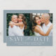 Annoncez votre date de mariage avec cette photo moderne et élégante enregistrez la carte de date. Le design comprend deux de vos photos fiançailles préférées avec "Save the Date" en serif blanc et des polices de script contre un arrière - plan bleu poussiéreux (ou couleur de votre choix). Personnalisez le minimaliste enregistrez les annonces de dates en ajoutant vos noms, date et emplacement mariage. La carte revient à un arrière - plan bleu foncé ou à la couleur de votre choix. Le simple enregistrement de la date annonce est parfait pour n'importe quel thème mariage.
