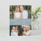 Annoncez votre date de mariage avec cette photo moderne et élégante enregistrez la carte de date. Le design comprend trois de vos photos fiançailles préférées avec "Save the Date" en serif blanc et des polices de script avec un arrière - plan bleu poussiéreux (ou couleur de votre choix). Personnalisez le minimaliste enregistrez les annonces de dates en ajoutant vos noms, date et emplacement mariage. La carte revient à un arrière - plan bleu poussiéreux. Le simple enregistrement de la date annonce est parfait pour n'importe quel thème mariage.