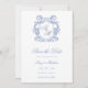 Ce mariage élégant monogramme en crête bleue poussiéreuse Enregistrer la carte de date avec les initiales de la mariée et du marié à l'intérieur d'une crête ornée serait parfait pour votre mariage. Les polices sont exquises. C'est tout simplement élégant.