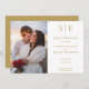 Cette carte de mariage en or minimaliste et chic peut être personnalisée avec vos initiales monogrammes, les détails du jour de mariage et votre photo spéciale. Conçu par Thisisnotme©
