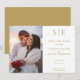 Cette carte chic et minimaliste de mariage à l'or en format 'save-the-date' peut être personnalisée avec vos initiales de monogramme, les détails de votre mariage et votre photo spéciale. Conçue par Thisisnotme©