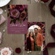 Embrace timeless elegance for your gothic-inspired celebration with our captivating wedding save the date card. A soft burgundy wine background provides the perfect canvas for a captivating, yet understated bouquet. Imagine a corner arrangement of muted rose blooms, where soft rust blush and rich burgundy hues mingle with dark green foliage. This ethereal design exudes quiet sophistication, perfect for the couple seeking a touch of romantic darkness. And elegant vintage script announces your card, while your wedding details are showcased in a modern font and your beautiful photo on the back. Created by Simply Farmhouse Press.