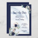 Save The Date Elégant Nautique Floral Ancre Marine Blue Blush