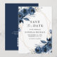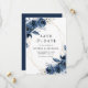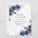 Save The Date Elegant Navy Blue Flowers & QR Code Wedding