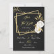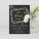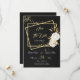 élégantes fleurs blanches romantiques et feuilles d'or sur rectangles dorés noir enregistrer la date invitation Les détails de la parties scintillant sont simulés