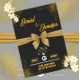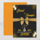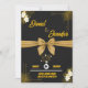 Annoncez votre journée spéciale avec cette élégante carte de faire-part de mariage "Save The Date" à thème doré et noir. Doté d'un ruban doré luxueux, de fleurs blanches délicates et d'une typographie sophistiquée, cette carte est idéale pour les couples modernes qui souhaitent faire une impression de classe. Idéal pour les mariages de cravates noires ou formelles, il donne le ton d'une célébration inoubliable. Customisez les noms, la date et le lieu pour convenir à votre style unique