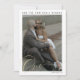 This elegant and simple black and white (with champagne gold accents) modern photo wedding save the date with a beloved Christian message - "And The Two Shall Become ONE - Ephesians 5:31" bible verse over your favorite engagement photo and script typography save the date wedding details in a stylish modern design on the back including your wedding website is the perfect way to announce your big day! Easily add your wedding details and upload your photo to make it uniquely yours! You may even edit / adjust placement of design components further, by clicking the blue "Edit using design tool" button at the bottom of the "Personalize This Template" window, then navigate to the "layers" tab in the left hand column of the edit screen, select the front or back side layer, then click on the element you would like to change with the toolbox on the right, and click the "done" button when finished ♥ Custom design and/or color requests and template questions are always welcome - click the "message" button or email us directly: figandlilyco@gmail.com. Design is lovingly created by Fig and Lily Studios - sending blessings and thanks for being here with us! (Photo credit of our beautiful daughter's engagement: @laurenmargaretphotography)
