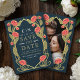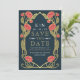 Capture timeless elegance with this Art Nouveau-inspired Save the Date! Featuring pink peonies, leaves against a blue background, this design sets the tone for a sophisticated celebration. The back features a place for your photo. Perfect for weddings, galas, and milestone events! Please note that the gold on this product is NOT real foil; it is printed flat.