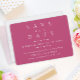 Annoncez votre Quinceañera en style avec notre élégante carte de datation. Avec un design blanc et rose foncé intemporel, riche, le nom de votre adolescent est présenté dans la typographie classique, ajoutant une touche raffinée de sophistication branchée. Customisez le texte pour créer une invitation chic et personnalisée qui saisit parfaitement l'essence de votre célébration Mis Quince Años. Ce simple mais élégant enregistrer la date est parfait pour donner le ton pour l'événement marquant du 15e anniversaire de votre adolescent. Disponible en différentes variations de couleurs, vous pouvez choisir la teinte parfaite pour correspondre à son style. Commandez maintenant pour rendre sa journée spéciale inoubliable !