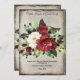Exquise disposition florale rouge foncé et blanc aquarelle sur un arrière - plan gris grunge complétée avec élégant script et serif combinaison de police pour enregistrer les détails de la date. Le dos de la carte présente le même arrangement floral élégant avec les noms du couple et la date mariage.