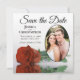 Ces magnifiques cartes de dates sont le moyen parfait pour que vos amis et votre famille connaissent votre prochain mariage. Elles présentent un design floral à la fois moderne et élégant avec un seul rose orange rouille longue ou couleur brulé se reflétant dans un bassin d'eau avec des vagues et des ondulations avec votre photo dans un cadre ovale sur un arrière - plan blanc classique. La légende indique Enregistrer la date avec de l'espace pour vos noms, la date et l'emplacement. Le dos est marbré de couleur orange citrouille.