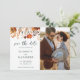 Ce mariage romantique et élégant à fleurs d'automne Save The Date carte photo présente un design botanique chic de fleurs automnales et de verdure dans les tons chauds et est facilement personnalisable avec l'une de vos photos fiançailles préférées. Cette carte Save The Date fait partie de la collection "Elegant Autumnal Floral Mariage", avec des éléments de coordination pour créer une suite de mariages unique.