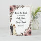 Cette élégante aquarelle fleurie à sauver la date invitation est parfait pour un mariage moderne. Le design romantique présente un cadre floral aquarelle élégant avec une illustration de mariée et de mariée et de calligraphie noire sur un arrière - plan blanc.
