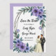 Cette élégante aquarelle fleurie à sauver la date invitation est parfait pour un mariage moderne. Le design romantique présente un cadre floral aquarelle élégant avec une illustration de mariée et de mariée et de calligraphie noire sur un arrière - plan blanc.