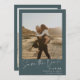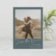 Elégant script calligraphie simple 2 photos bleu poussiéreux et faux argent foil mariage enregistrer la date.