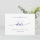 Save The Date Élégant script, blanc et marine, Mariage simple