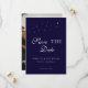 Élégant script céleste Minuit Bleu Mariage Photo Enregistrer la date