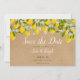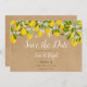 Cette floraison de citrons botaniques enregistrer la carte date dispose d'un script élégant enregistrer la date au-dessus de vos détails définis dans la typographie chic sur un arrière - plan kraft rustique. Conçu par Thisisnotme©