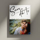 Rendez votre annonce spéciale inoubliable avec notre carte "Save the Date" de mariage avec photo et écriture diagonale élégante. Cette carte magnifiquement conçue présente une écriture noire diagonale saisissante qui indique "Save the Date" en haut, ajoutant une touche d'élégance moderne. En dessous de l'annonce, vos noms et date de mariage sont affichés dans une police sans-serif élégante, espacés parfaitement pour créer un look propre et sophistiqué.