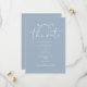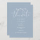 Cette élégante invitation bleue poussiéreuse à sauvegarder la date peut être personnalisée avec vos informations dans la typographie chic avec votre site mariage code QR et les détails sur l'inverse. Conçu par Thisisnotme©