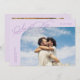 Elegant and stylish save the date card featuring a script text that says "save the date." One photo in the font and one on the back. The background is lilac.