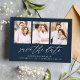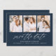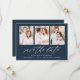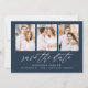 Save The Date Élégant Script Navy 3 Photo Collage
