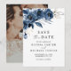 Save The Date Elegant Script Navy Blue Floral Photo Wedding