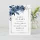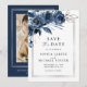 Save The Date Elegant Script Navy Blue Floral Photo Wedding