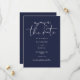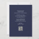 Cette élégante invitation bleu marine à sauvegarder la date peut être personnalisée avec vos informations dans la typographie chic avec votre code QR site mariage et les détails sur l'inverse. Conçu par Thisisnotme©