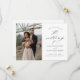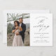 Un élégant mariage photo script 2 enregistrer la carte de date avec des détails calligraphiques élégants, une photo verticale et le texte classique sur le devant. Le dos dispose d'une photo horizontale et d'un site web mariage pour les clients pour obtenir plus d'informations. Cliquez sur le bouton Modifier pour customiser cette conception.